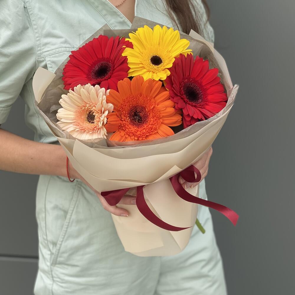 Букет из 5 гербер в оформлении!
