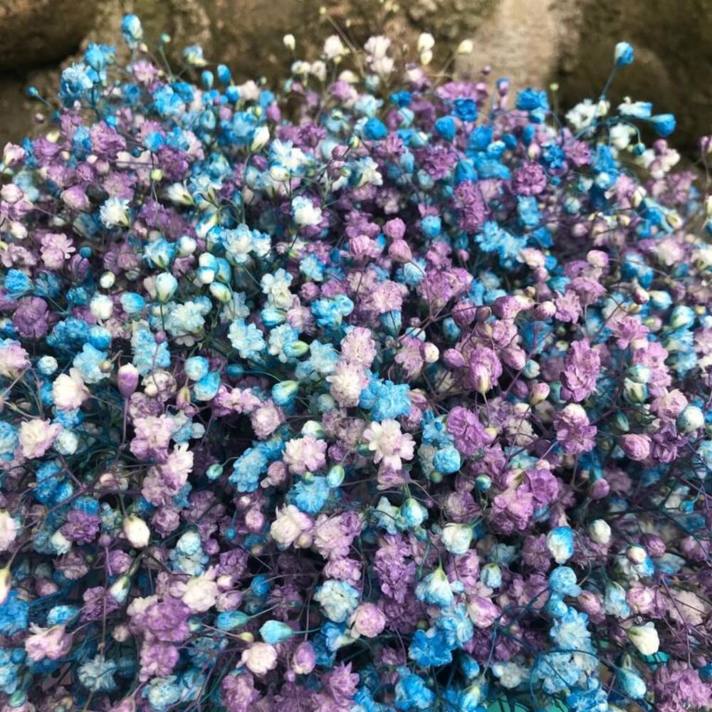 Лента атласная – 2 шт.Коробка шляпная – 1 шт.Оазис флористический – 1 шт.гипсофила радужная крашеная – 13 шт.