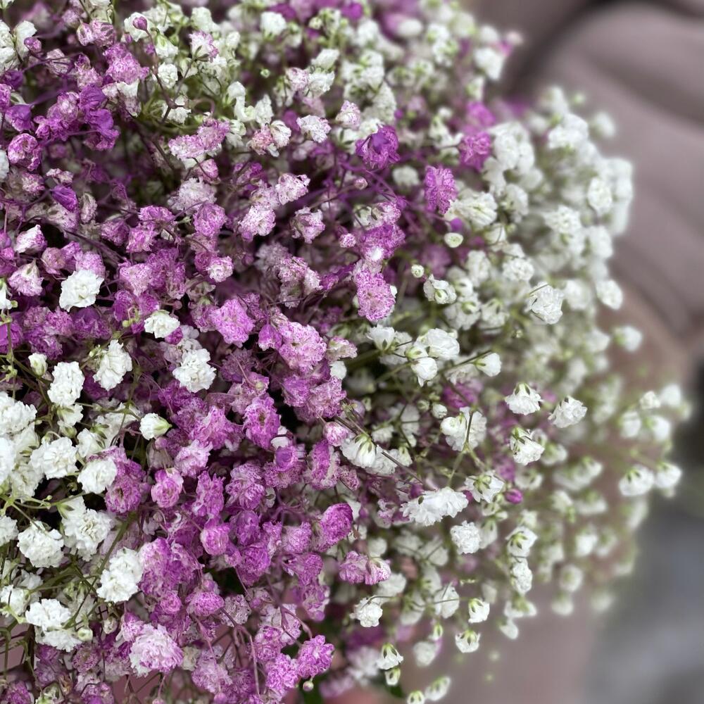 «Лавандовое созвездие» Букет из розы, гвоздики, статица и хлопка