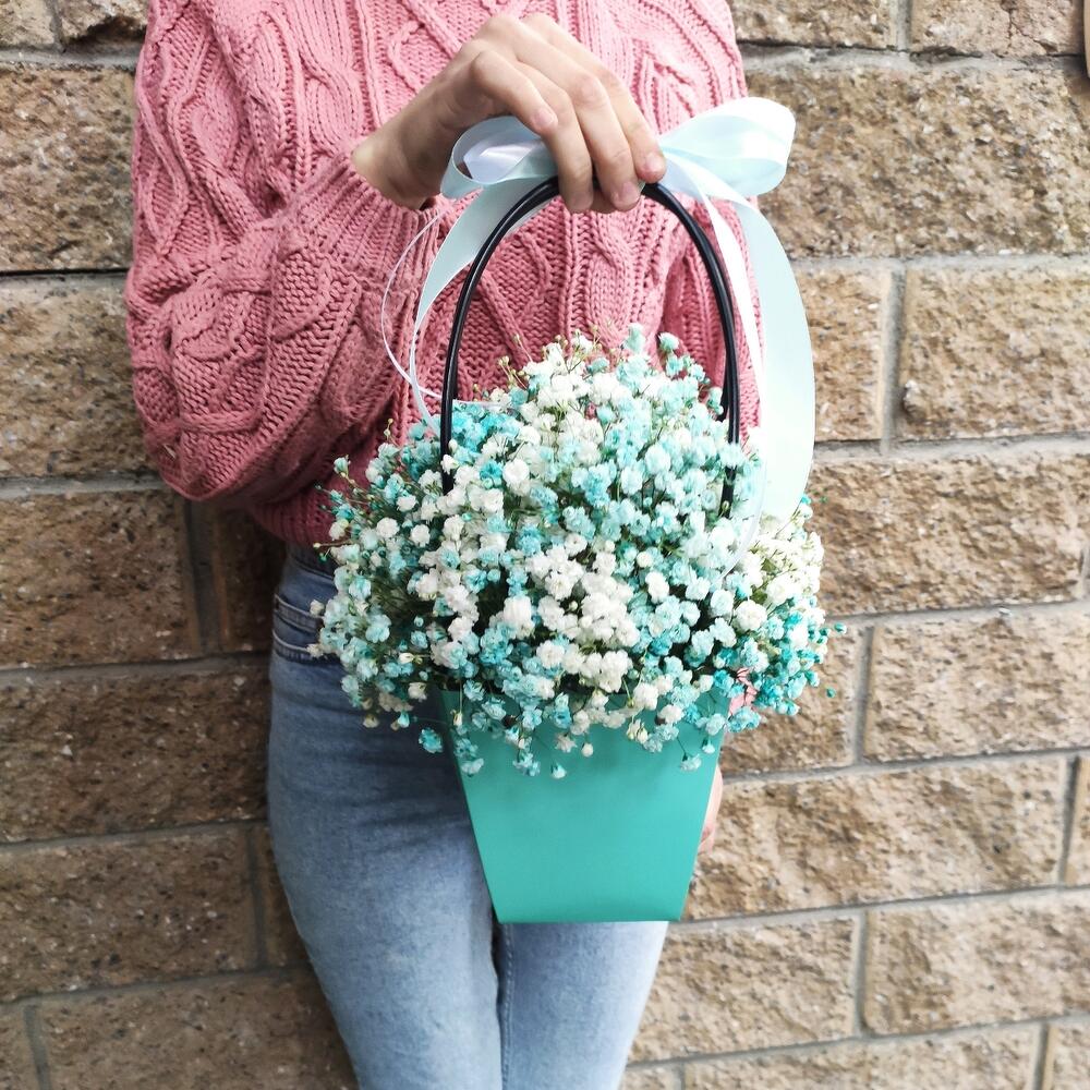 Гипсофила – 6 шт.сумочка флористическая с лентами – 1 шт.Оазис флористический – 1 шт.