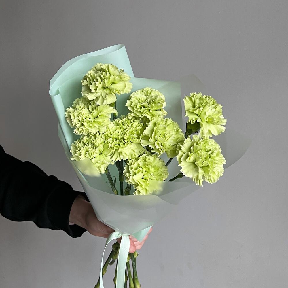 диантус lime – 9 шт.Дизайнерская упаковка – 1 шт.Лента – 1 шт.