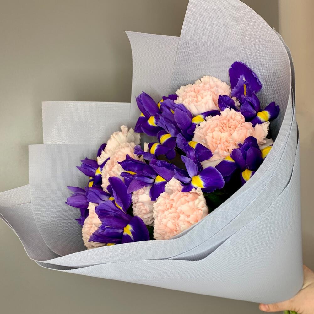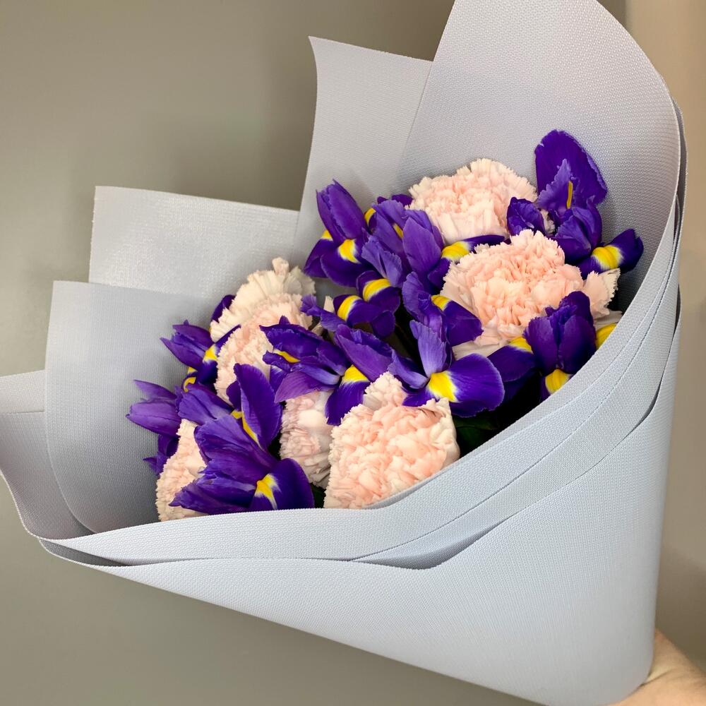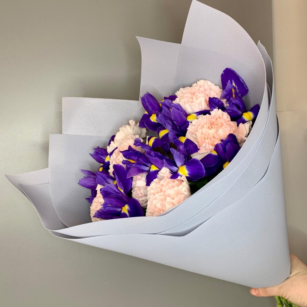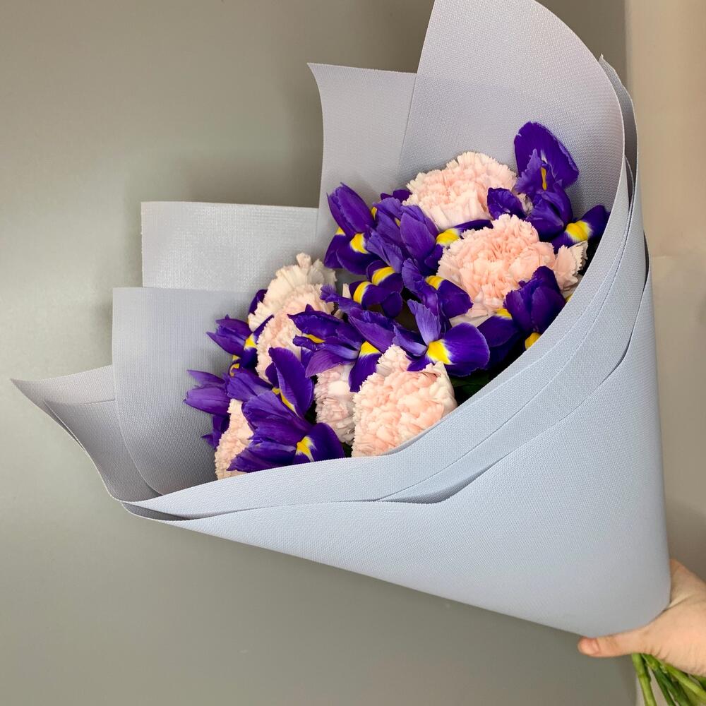 Ирис – 10 шт.Лента атласная – 2 шт.Диантус – 7 шт.Фетр – 2 шт.