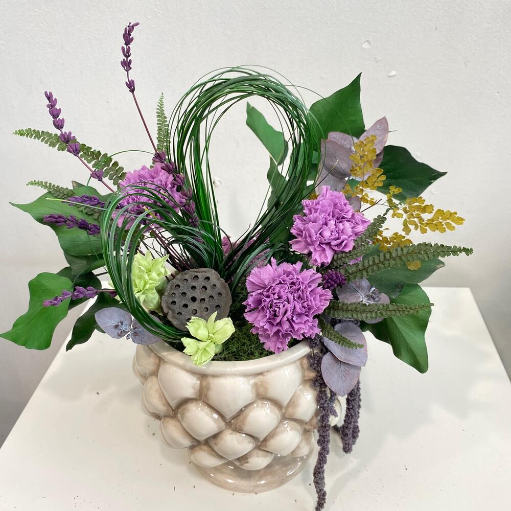 Композиция из стабилизированных цветов в кашпо Антик