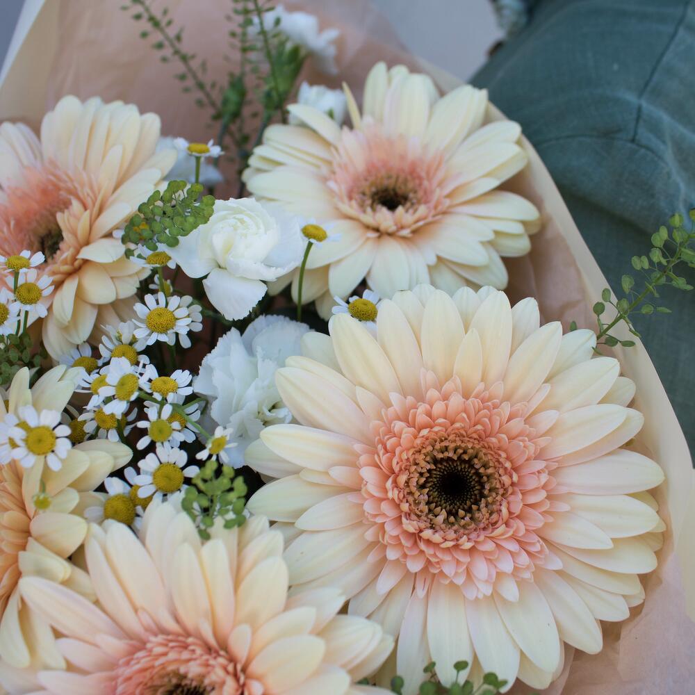 Категории: Гвоздики, Герберы, Ромашки