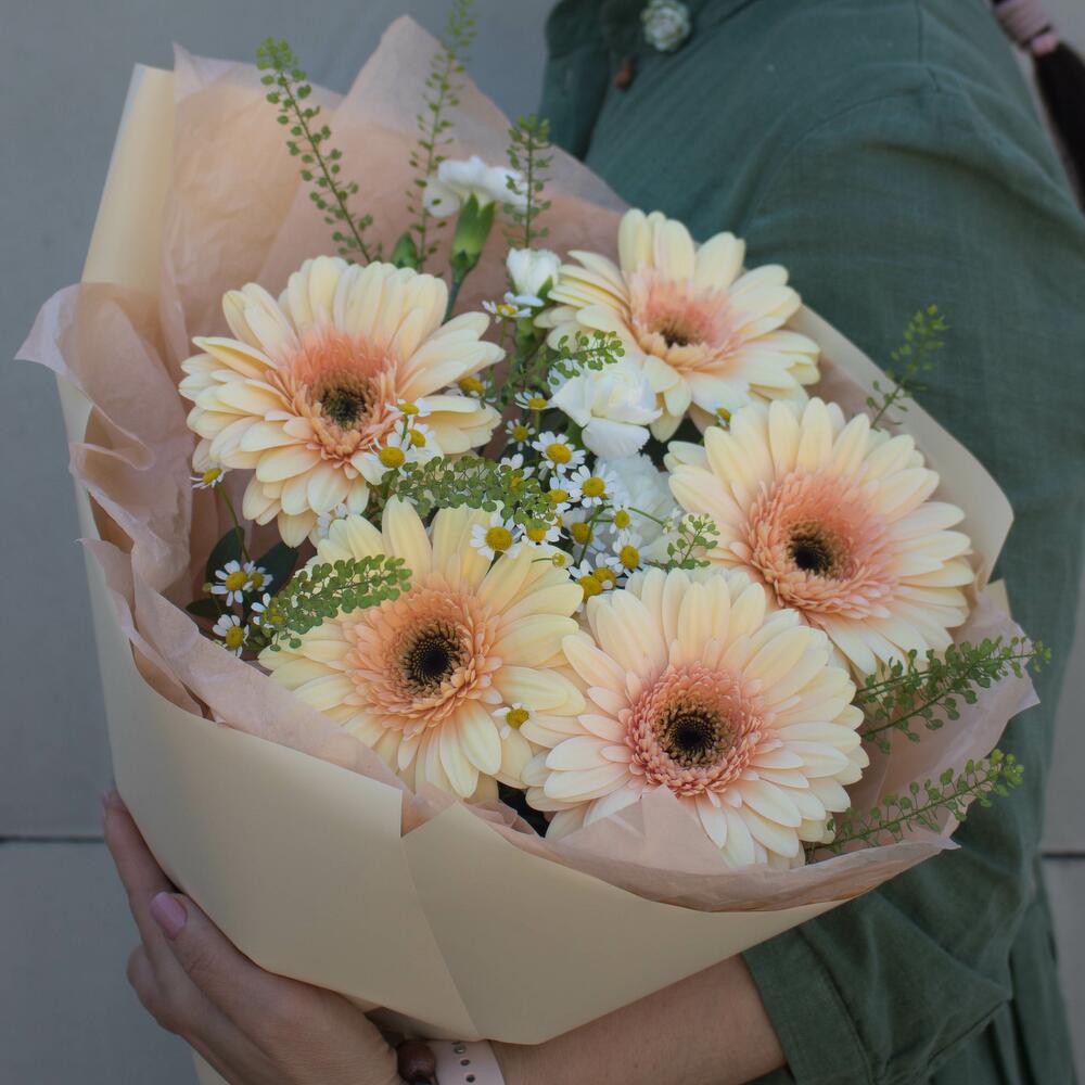 Гербера – 5 шт. Танацетум – 2 шт. диантс – 2 шт.