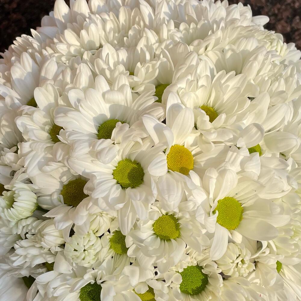 Хризантема кустовая – 8 шт.Губка флористическая – 1 шт.Кашпо – 1 шт.