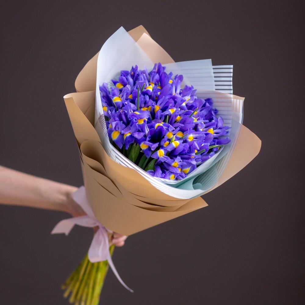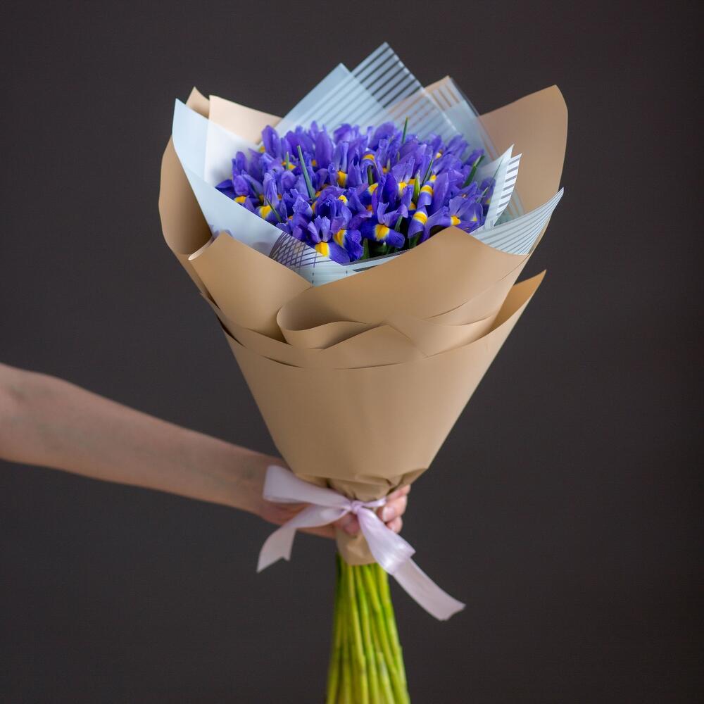 Ирис Blue Magic – 25 шт.Корейская пленка – 1 шт.крафтовая бумага – 1 шт.Атласная лента – 1 шт.