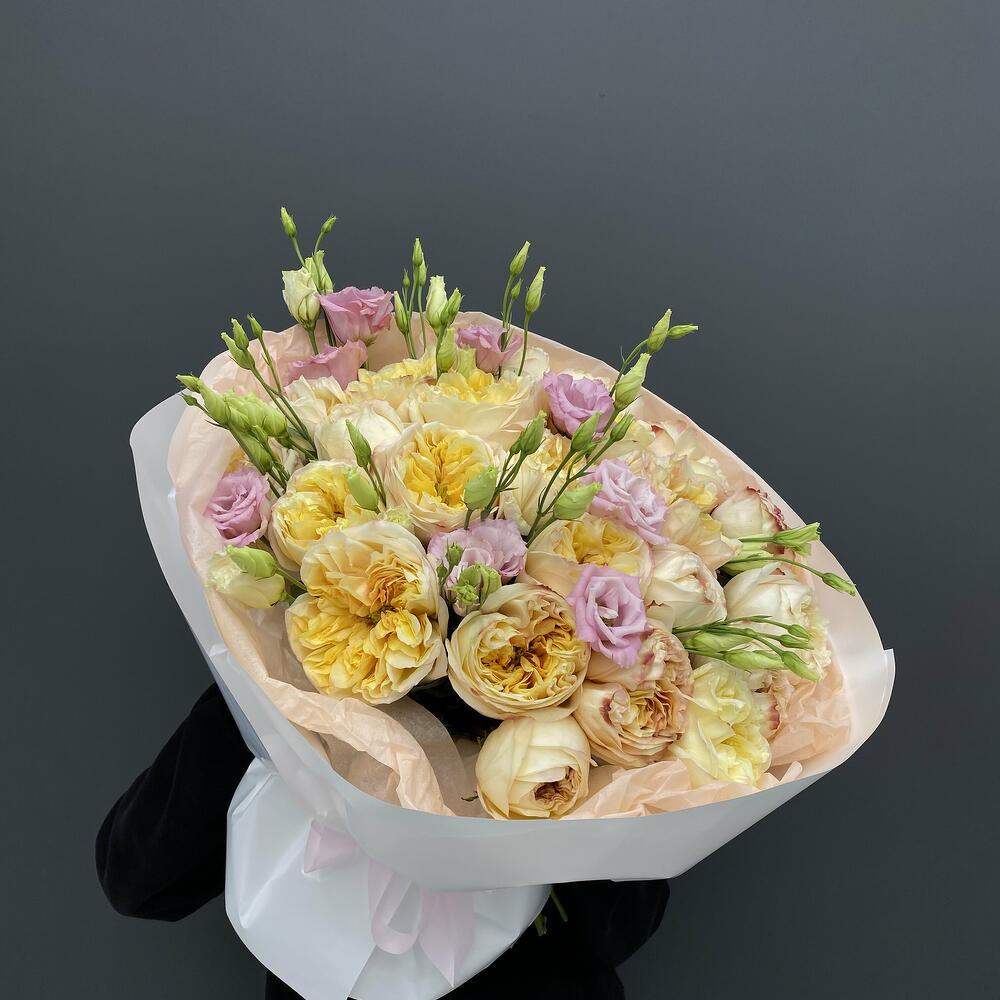 Альстромерии, Гвоздики, Кустовые розы, Лизиантусы, Розы, Хризантемы