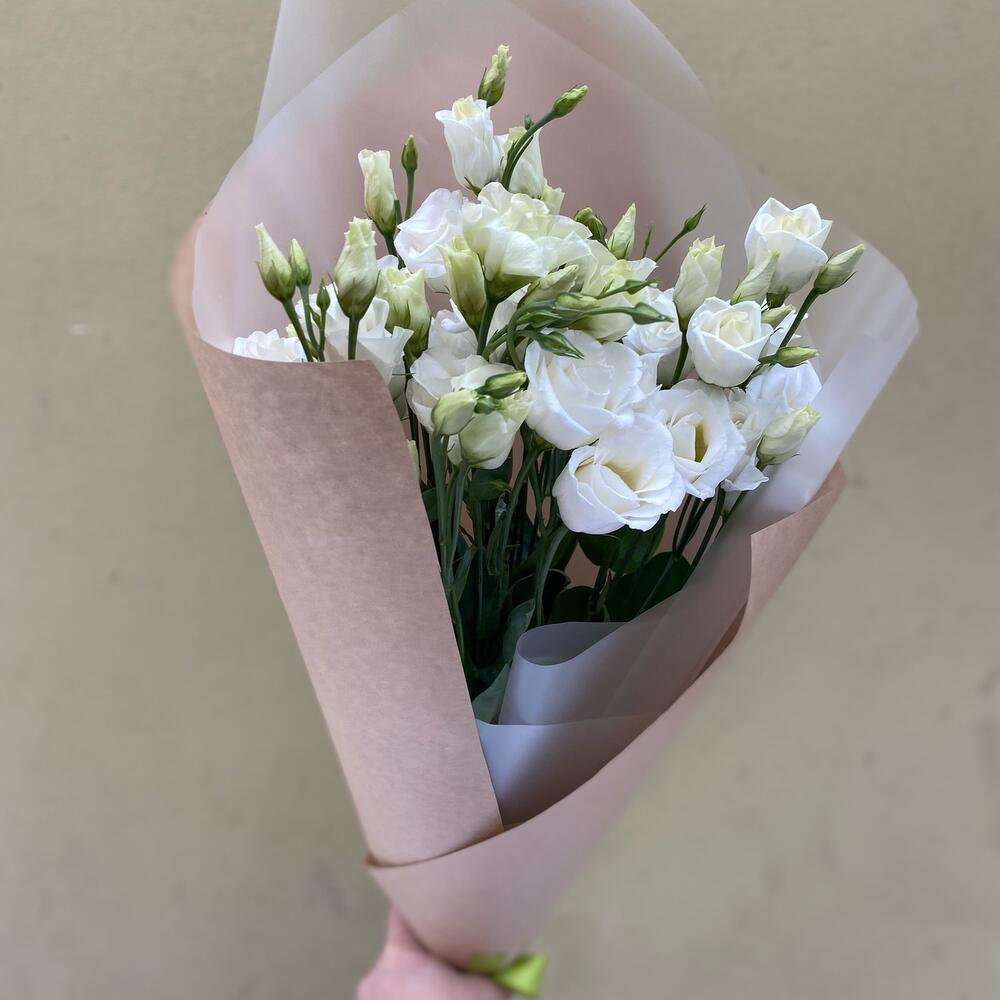 Лизиантус Алиса белый – 5 шт.Упаковка крафт дизайнерский – 1 шт.Лента – 1 шт.