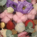 Клубника – 13 шт.Голубика – 10 шт.Лизиантус сиреневый – 4 шт.Хлопок натуральный – 7 шт.Лизиантус алиса пинк – 3 шт.макарон (пирожное) – 4 шт.Зефир клубничный – 6 шт.Клубника в шоколаде callebaut (бельгия) – 14 шт.зелень декоративная – 4 шт.конфеты кокосовые – 12 шт.транспортировочная упаковка – 1 шт.Упаковка дизайнерская – 1 шт.конфеты золотые – 16 шт.
