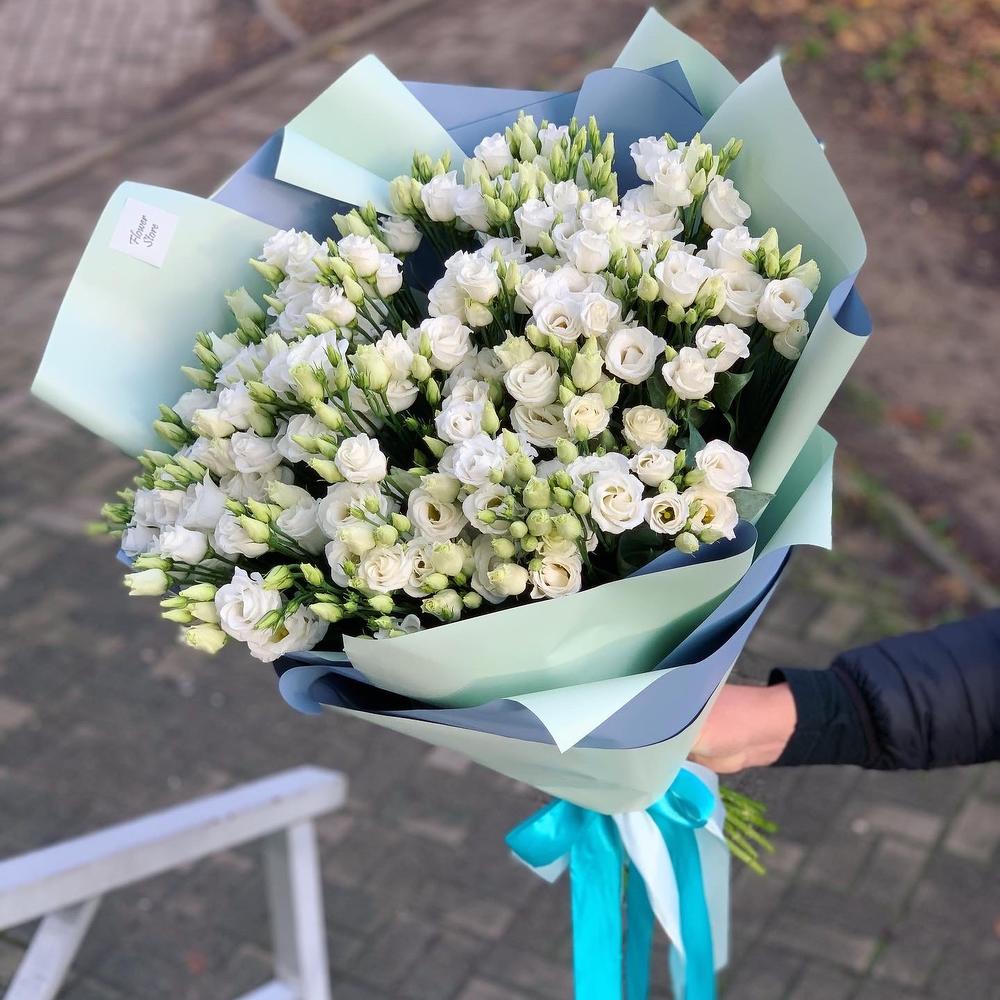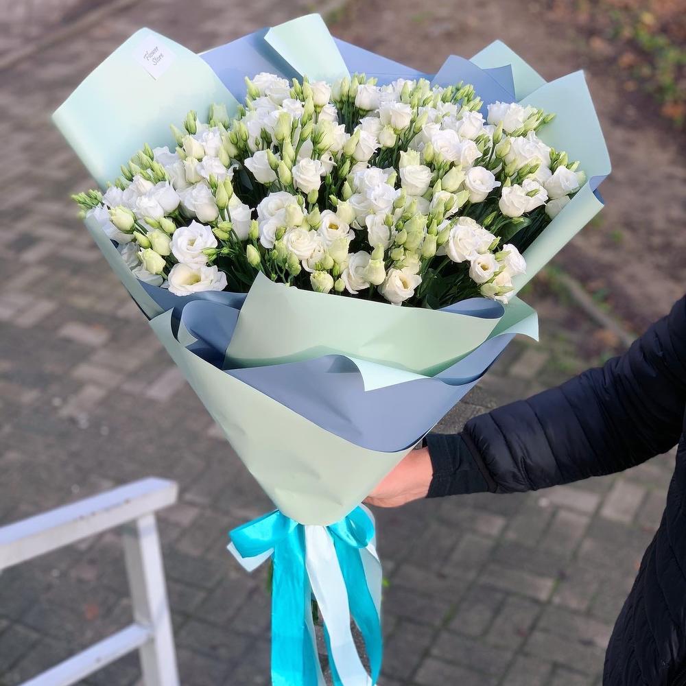 Эустома – 37 шт.цветная бумага – 1 шт.Атласная лента – 1 шт.