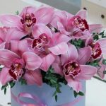 Потрясающая композиция в Шляпной коробке из розовой орхидеи Цимбидиум станет отличным подарком в день рождение, юбилей или просто в качестве знака внимания