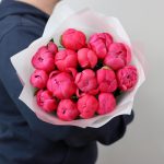 Лента атласная – 1 шт.Упаковка дизайнерская – 4 шт.Пион коралл шарм – 15 шт.