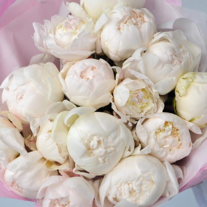 Пион – 15 шт.Лента атласная – 1 шт.Упаковка дизайнерская – 2 шт.
