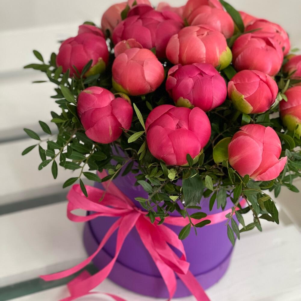 Коралловые пионы в коробке
