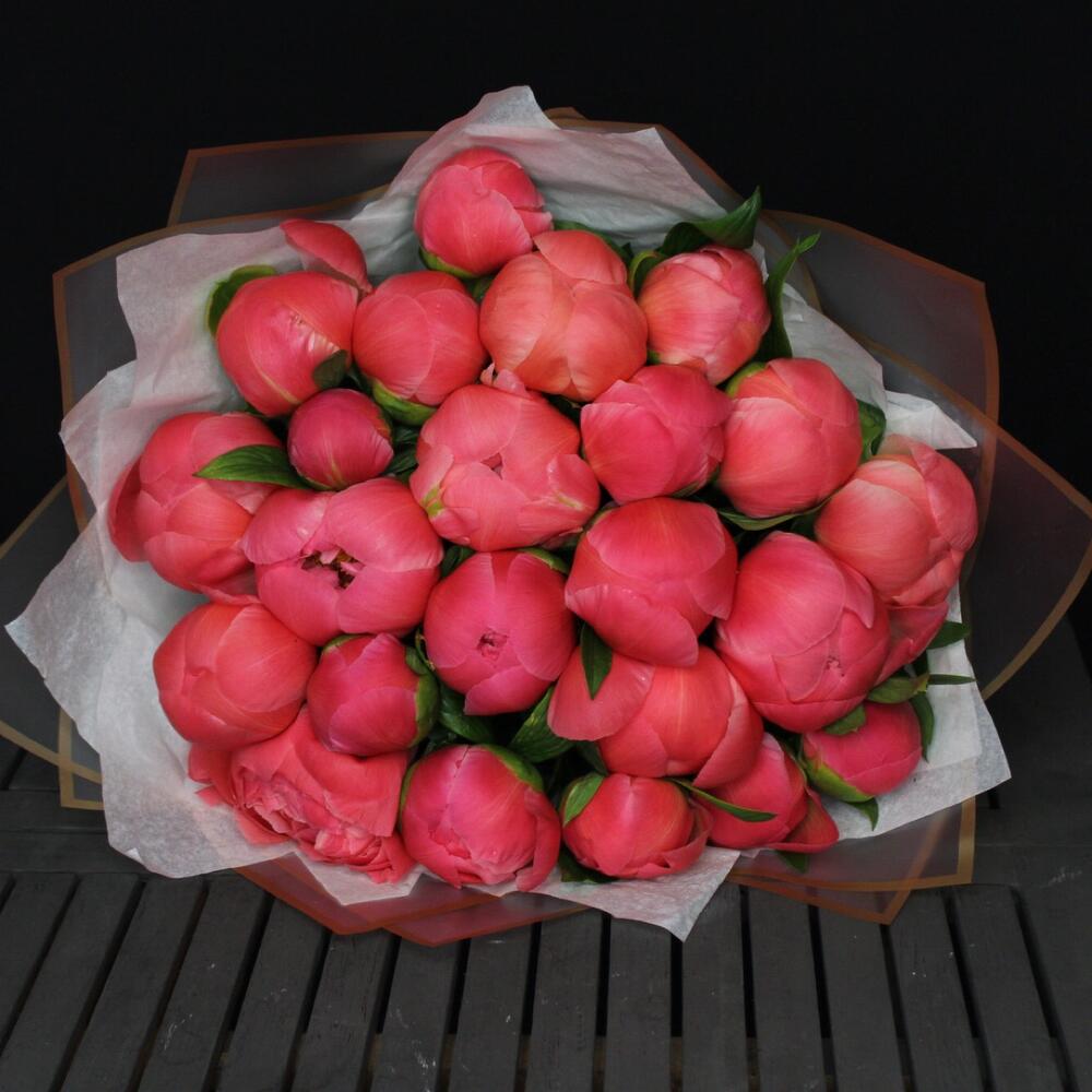 mono bouquet 132 из 23 пионов сорта coral charm
