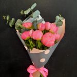 Пион Коралл Шарм (Coral Charm) – 7 шт.Эвкалипт – 1 шт.Упаковка дизайнерская – 1 шт.