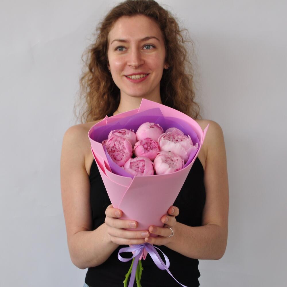 Её любимые цветы!Ароматные розовые пионы сорта Сара Бернар Бутоны в самом начале своего роспуска – будут радовать получателя долгое время)Радуйте своих любимых!