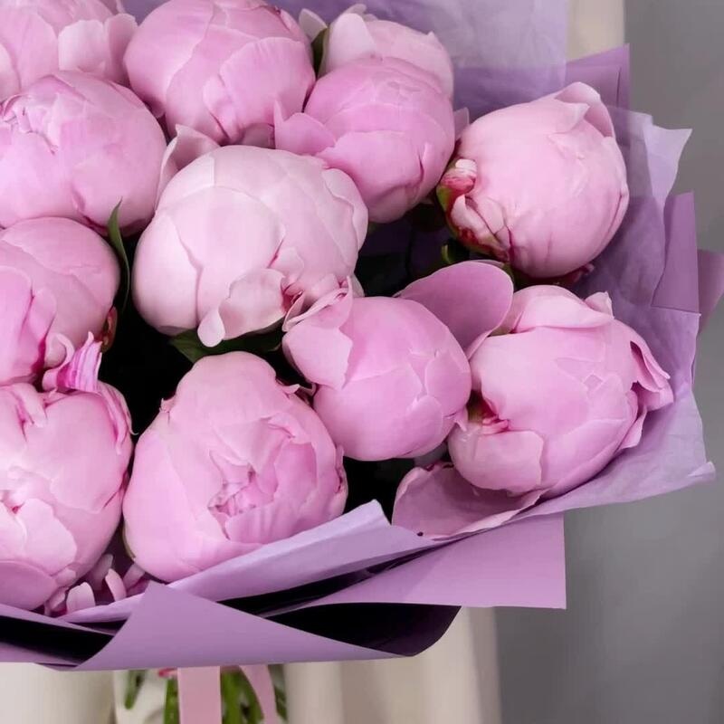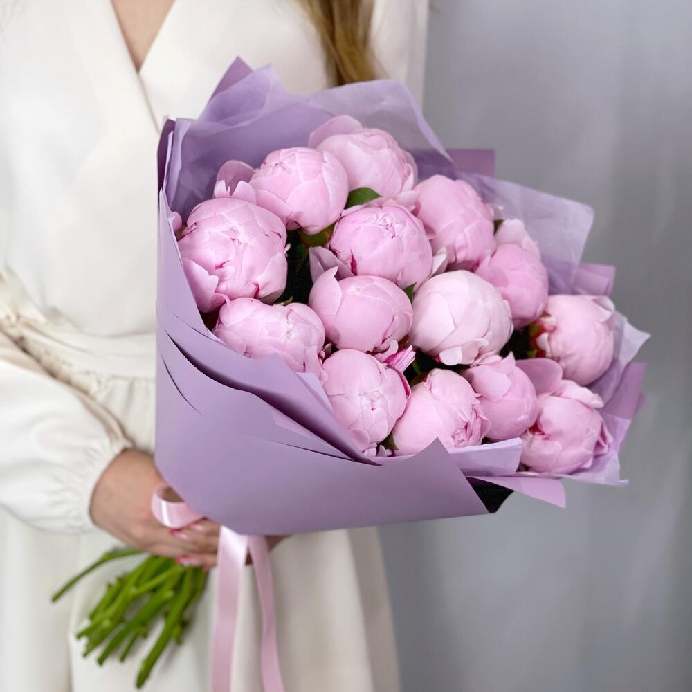 Букет из шикарных ароматных розовых пионов сорта Сара Бернар.Пионы распускаются еще в вазе и будут радовать до 5-7 дней.Степень раскрытия пионов всегда разная, мы можем гарантировать со своей стороны свежесть цветов.К каждому букету мы прикладываем:- открытку с Вашими пожеланиями- инструкцию по уходу за букетом- пакетик кризала для продления жизни цветов