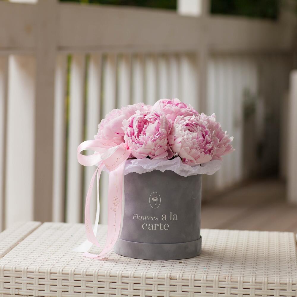 Шикарные пионы в бархатной коробке.