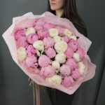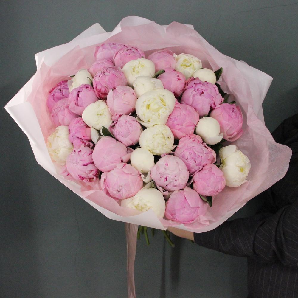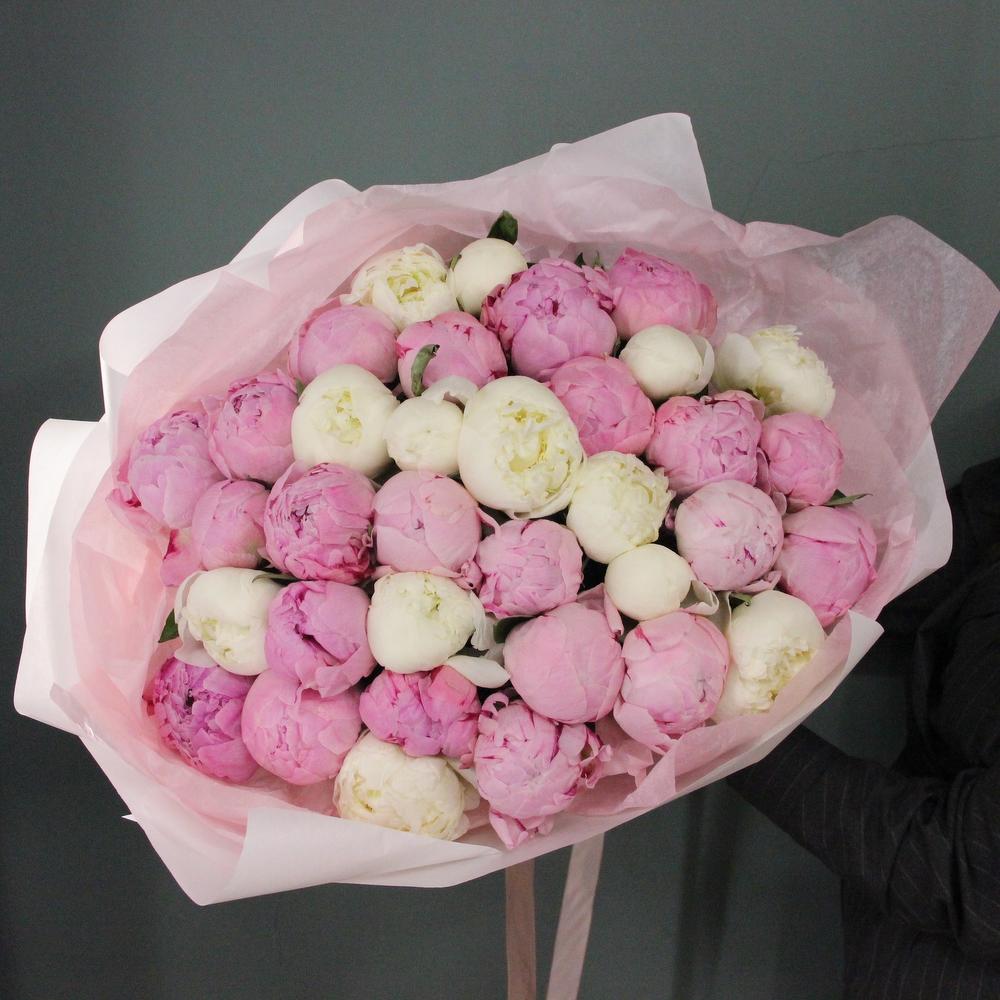 Букет из 35 пионов, в лаконичной упаковке.Стильное цветочное решение для любого случая.