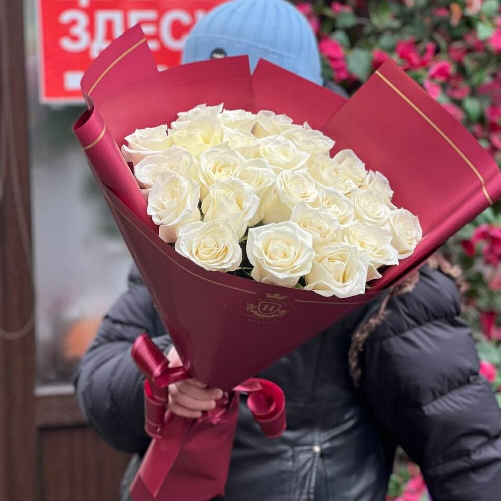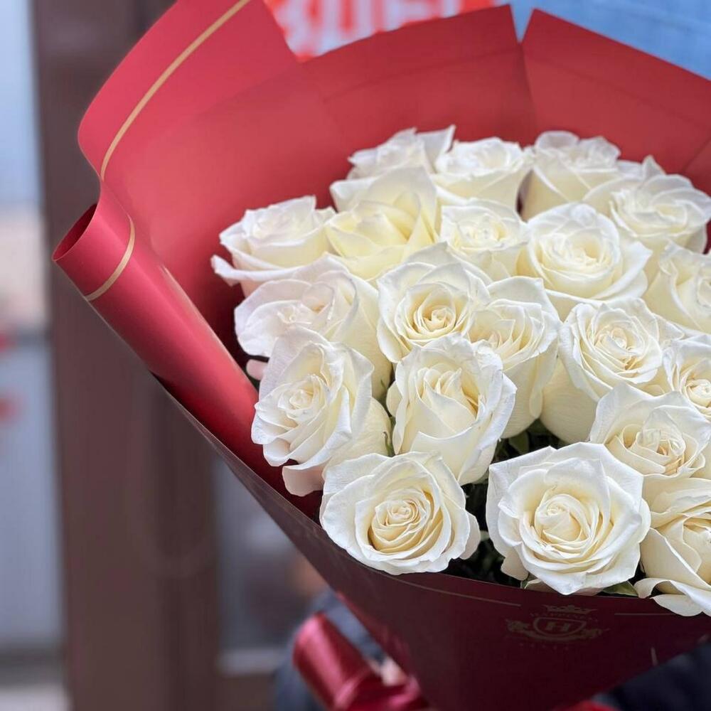 Нежный букет из белоснежных ароматных голландских роз станет замечательным подарком для ваших родных и близких