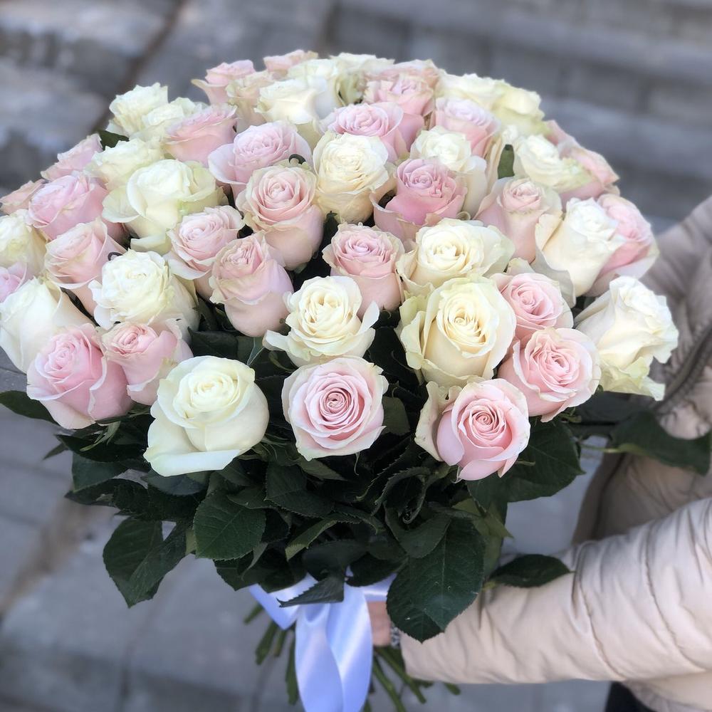 Метки: 25 роз, Белые розы, На свадьбу, от 5000 руб, Роза 50 см, Розовые розы
