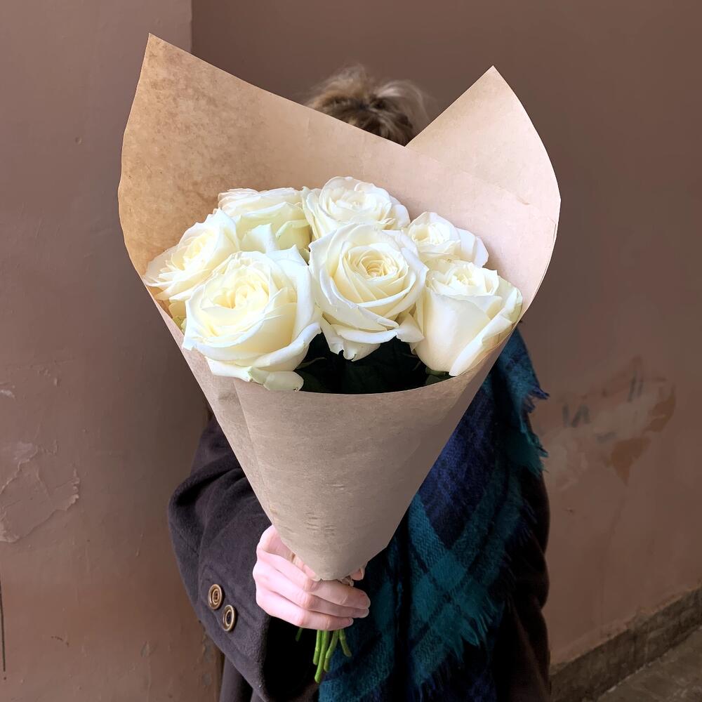 Крафт упаковка – 1 шт.белая роза россия – 7 шт.