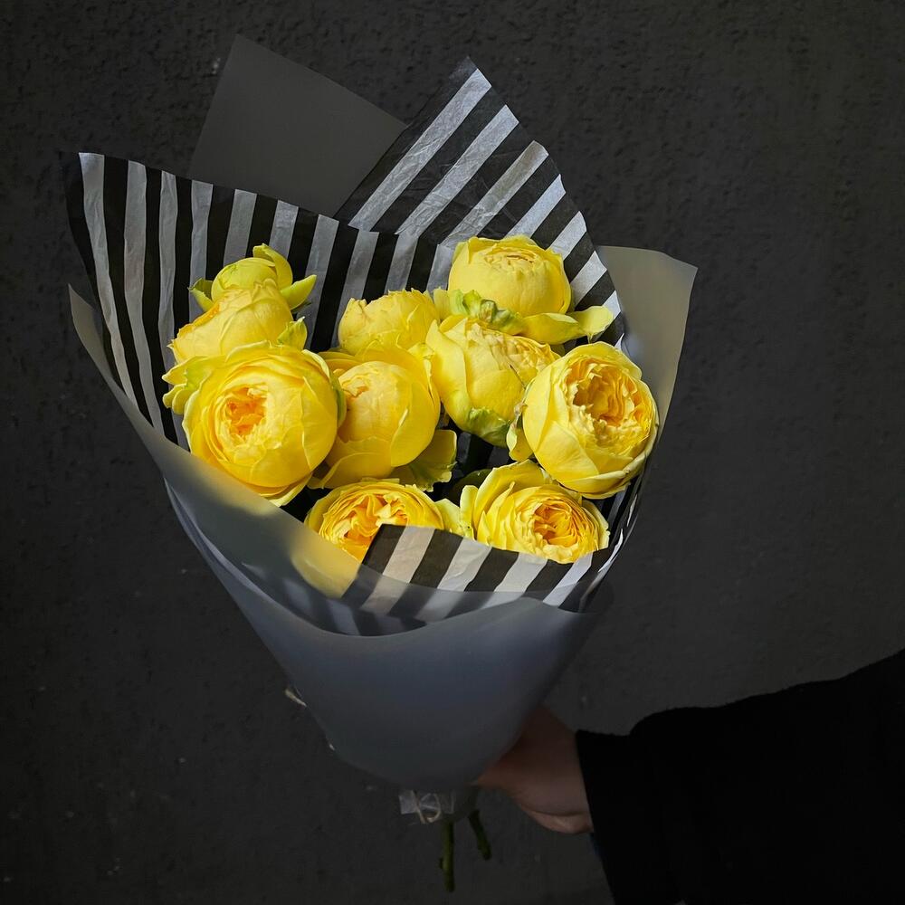 Роза кустовая пионовидная – 9 шт.Упаковка дизайнерская – 3 шт.