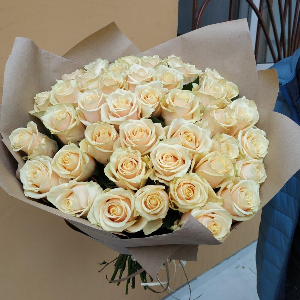 роза украинская кремовая – 51 шт. оформление крафт бумага – 1 шт.