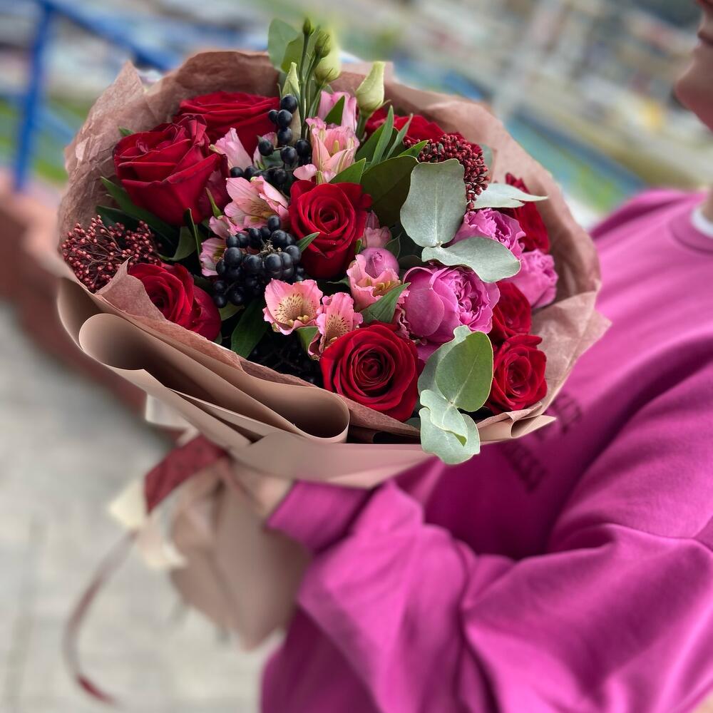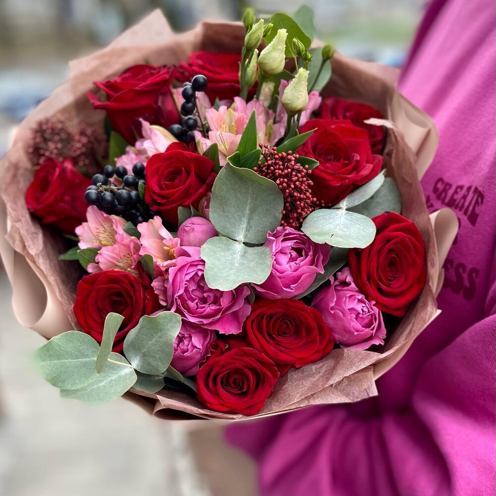 Кустовые розы, Пионовидные розы, Розы, Сухоцвет, Тюльпаны