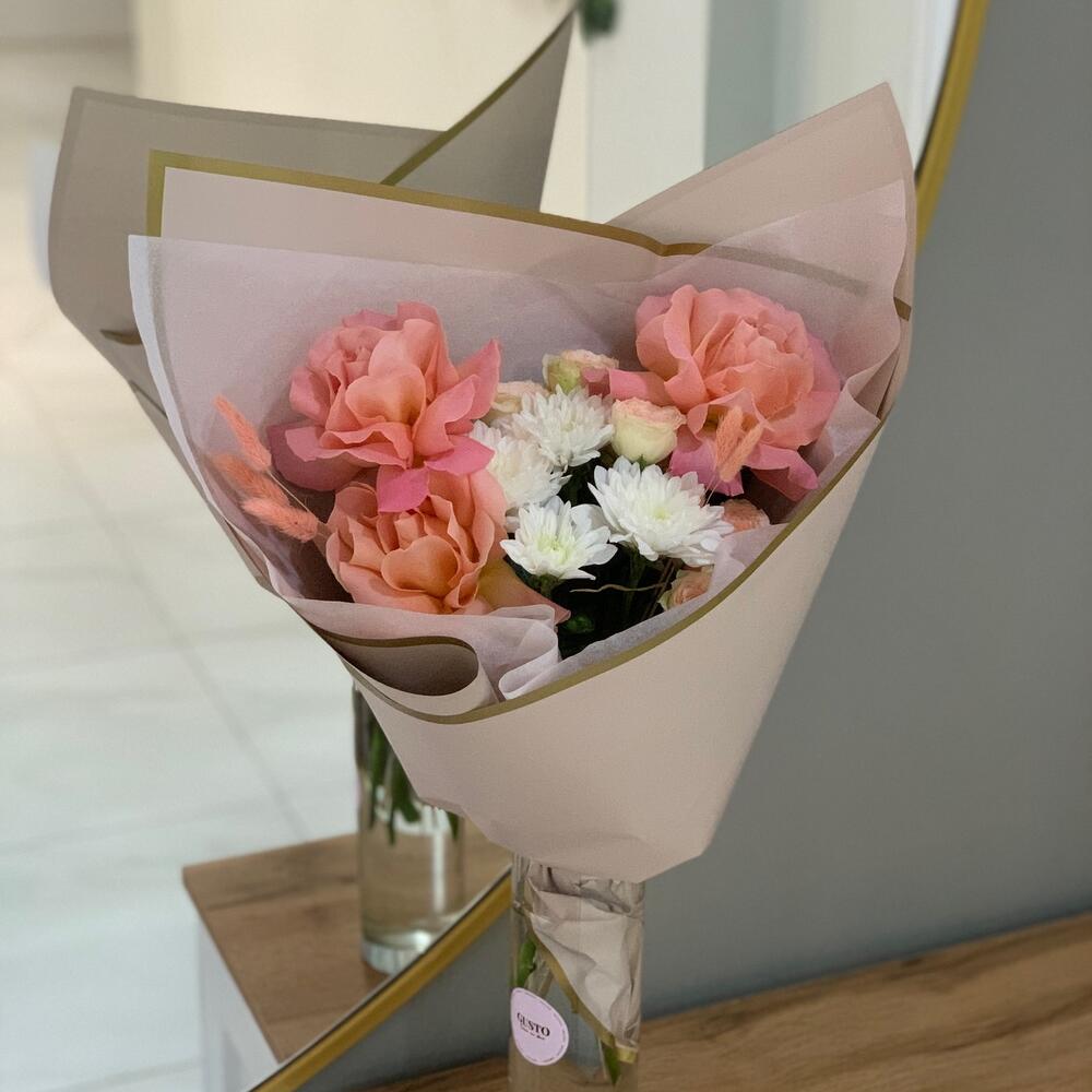 Кустовые розы, Лизиантусы, Розы, Сухоцвет