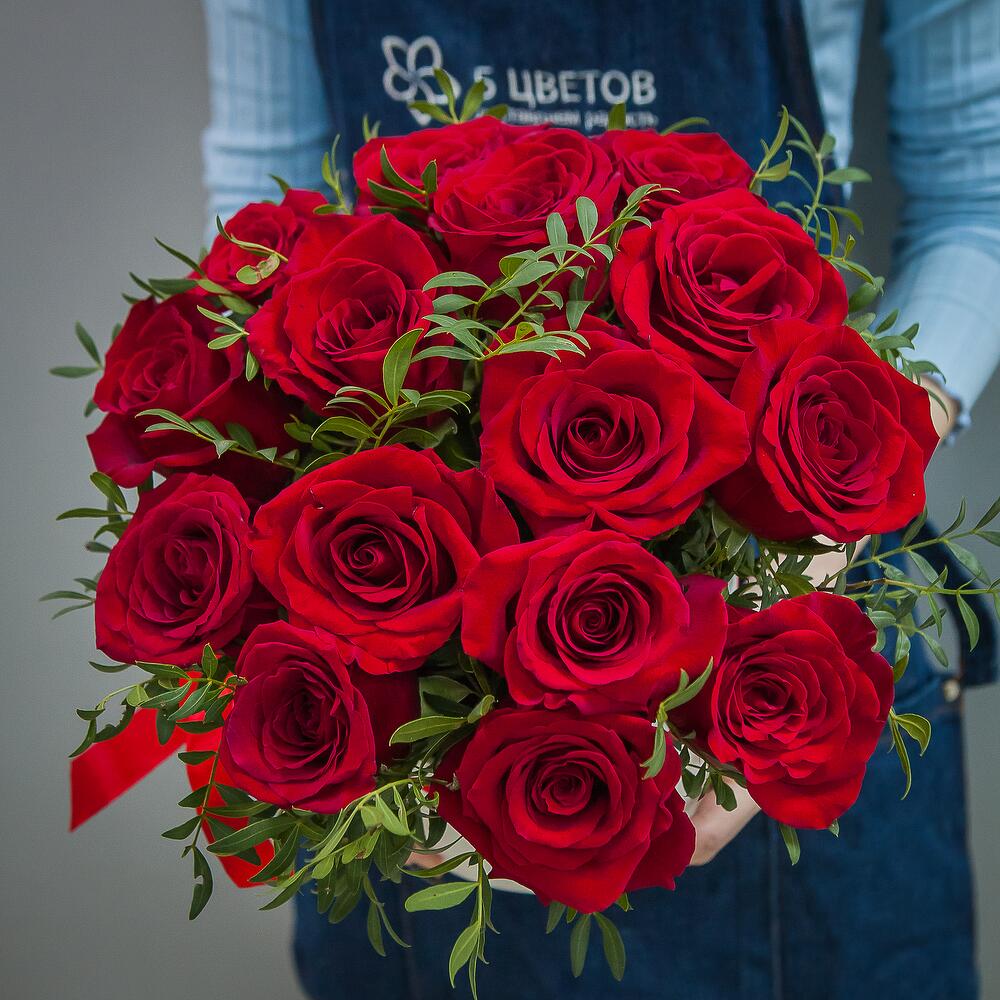 Букет из 15 красных роз 70см
