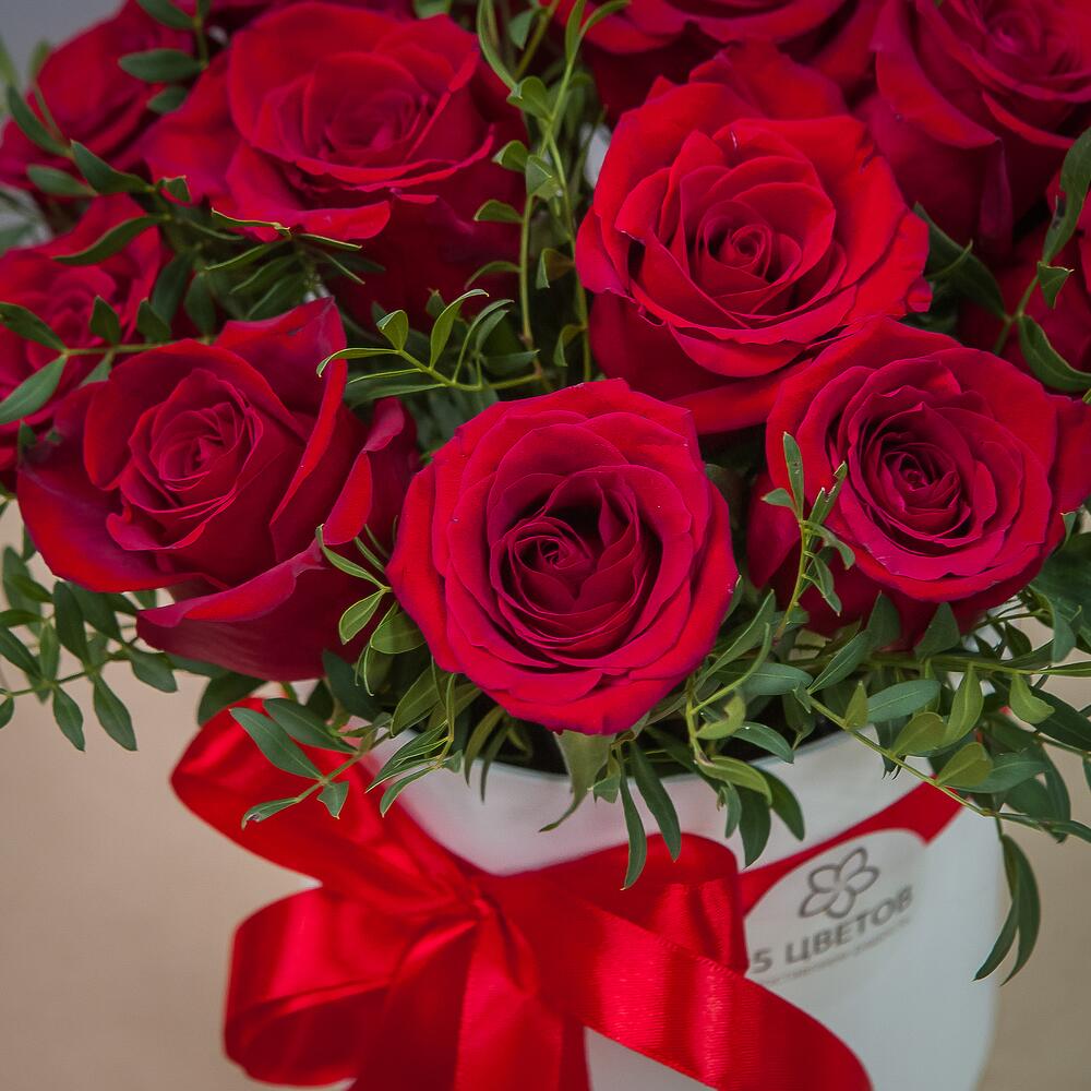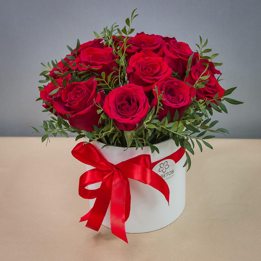 розы – 15 шт.Шляпная коробка – 1 шт.