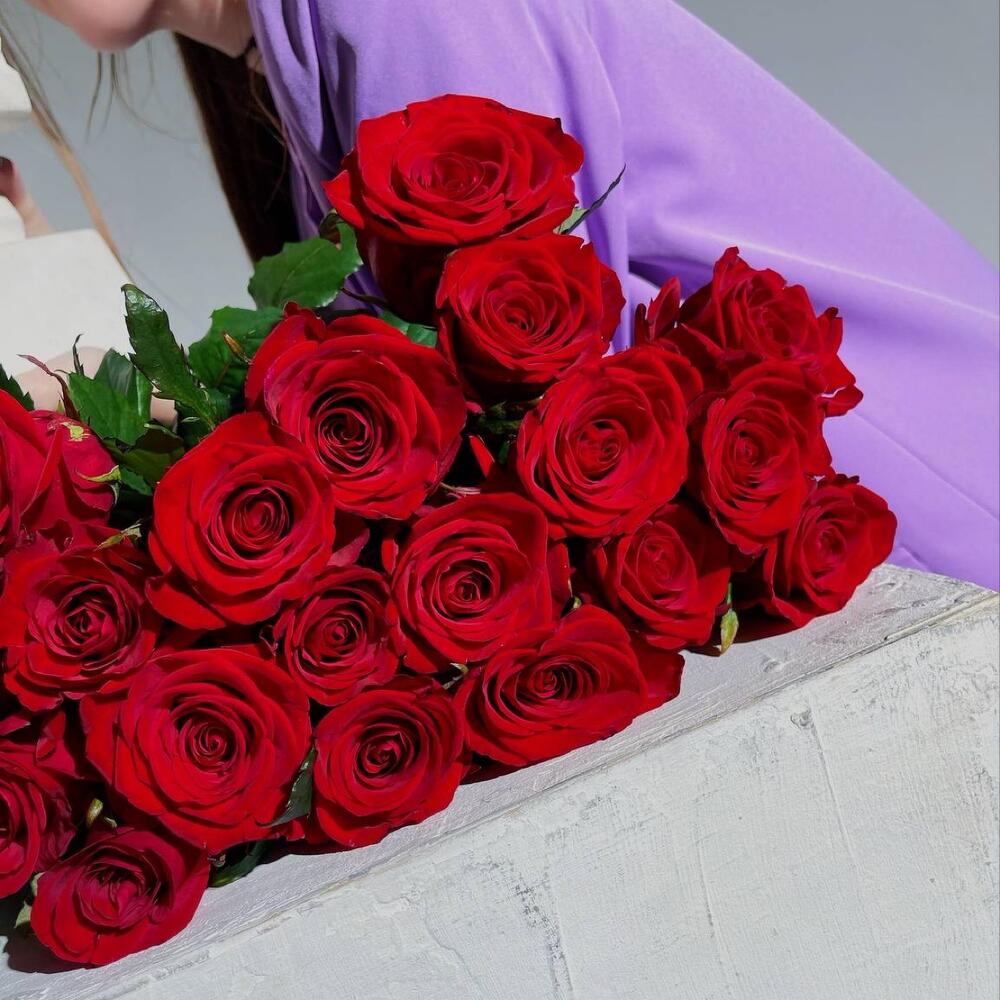 Букет из 21 высокой красной розы