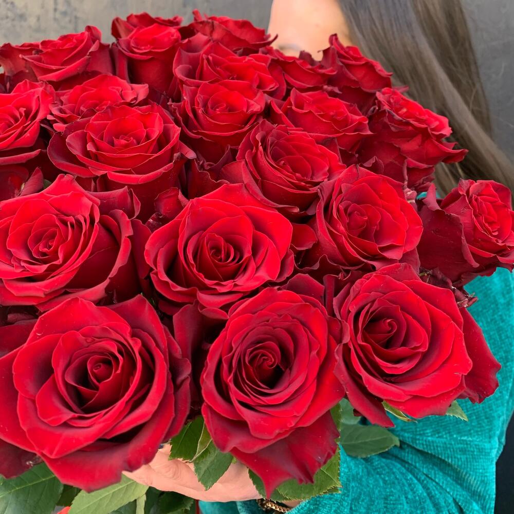 Букет из 25 длинных красных роз