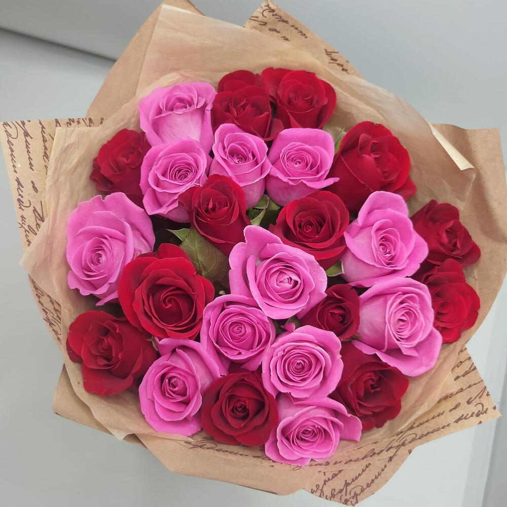 Букет из 25 роз розово-красный микс