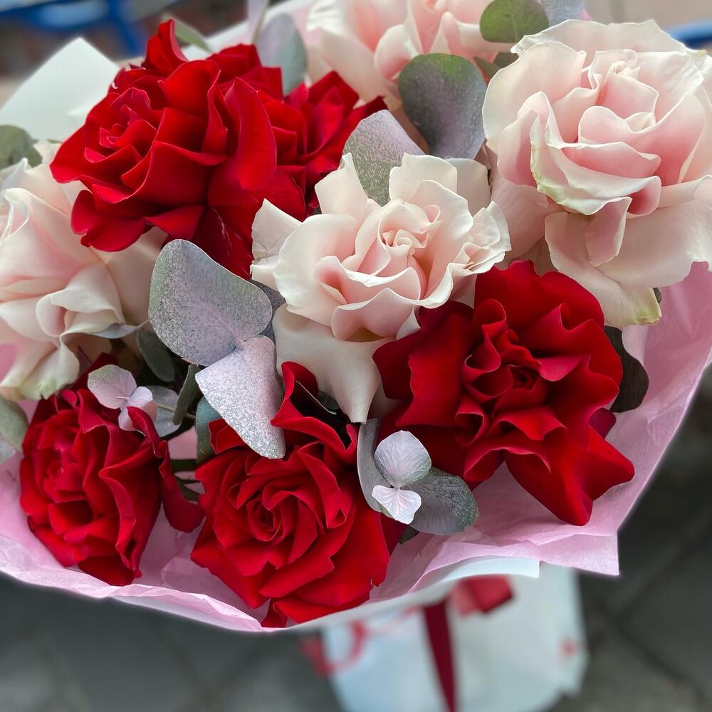 Букет из французских роз с эвкалиптом