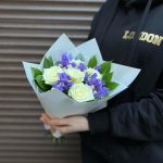 Букет из роз с ирисами