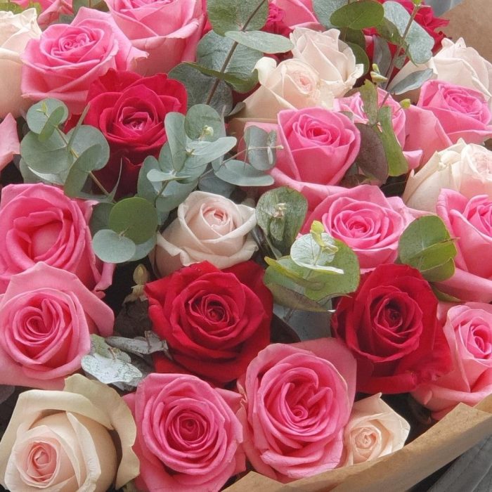 Эвкалипт – 10 шт.Роза – 45 шт.Упаковка дизайнерская – 1 шт.