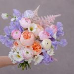 Букет невесты в персиково-сиреневой гамме