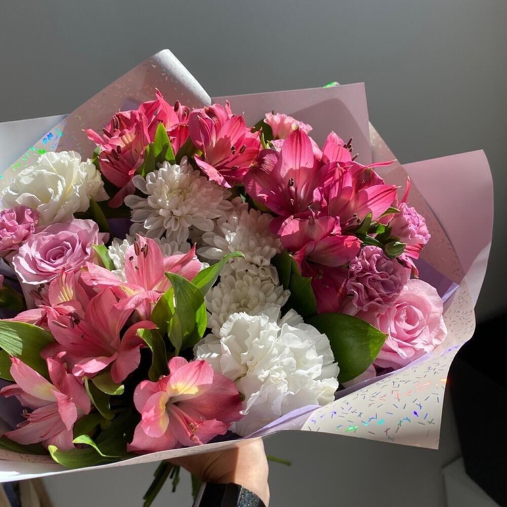 Категорий: Альстромерии, Гвоздики, Кустовые розы, Розы, Хризантемы