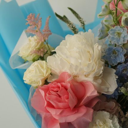 Букет с розами и пионом