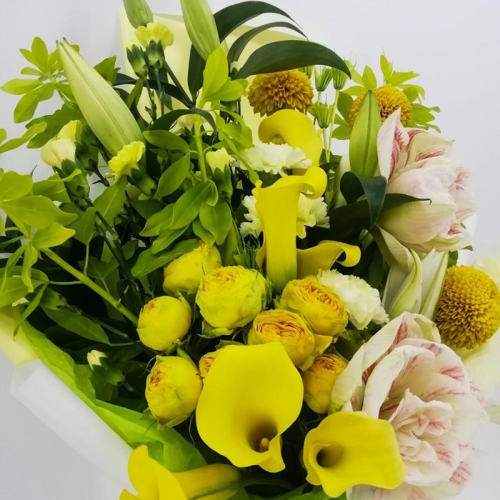 Категорий: Каллы, Кустовые розы, Лилии, Пионовидные розы, Розы