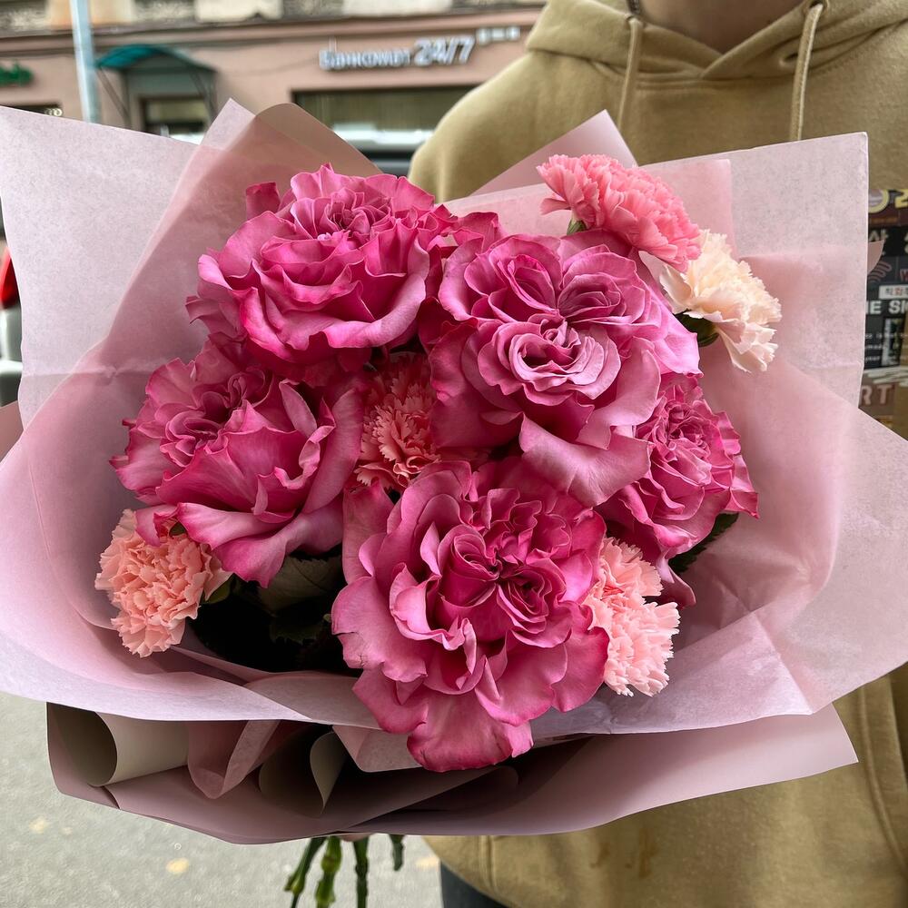 Категории: Гвоздики, Пионовидные розы, Розы