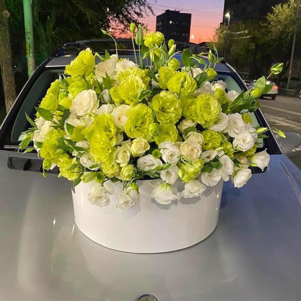 Альстромерии, Кустовые розы, Лизиантусы, Пионовидные розы, Розы, Ромашки