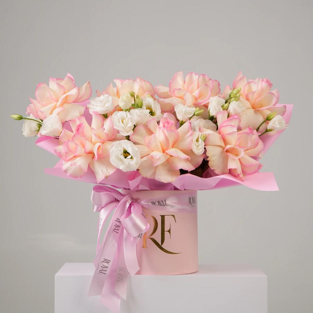 Альстромерии, Гвоздики, Кустовые розы, Лизиантусы, Розы, Хризантемы