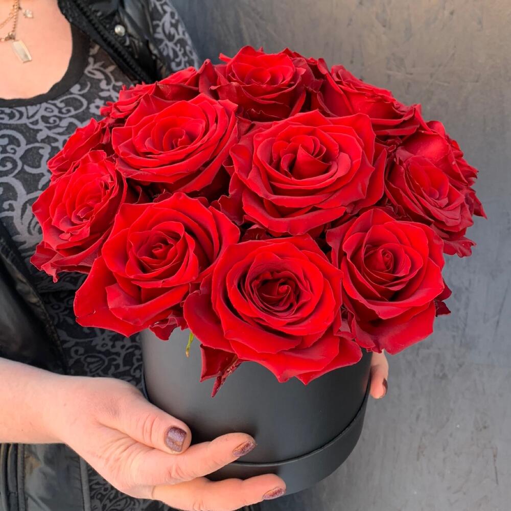 Роза красная – 19 шт.Оазис флористический – 1 шт.Шляпная коробка – 1 шт.