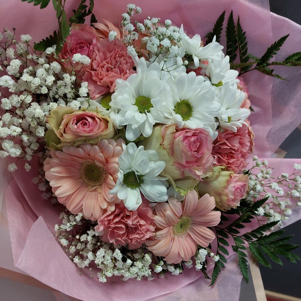 Категорий: Гвоздики, Герберы, Гипсофила, Кустовые розы, Розы, Хризантемы