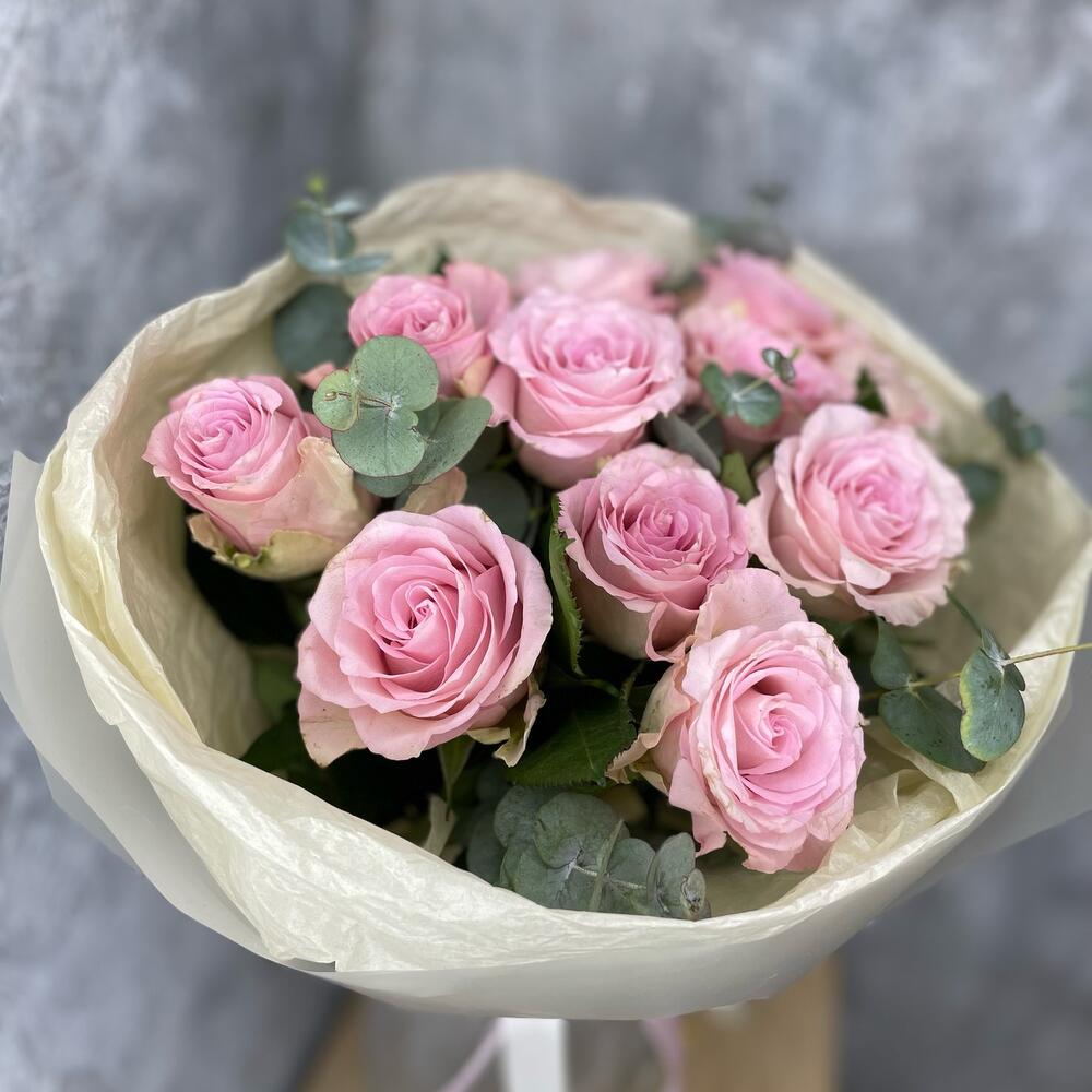 Нежно розовые розы с эвкалиптом